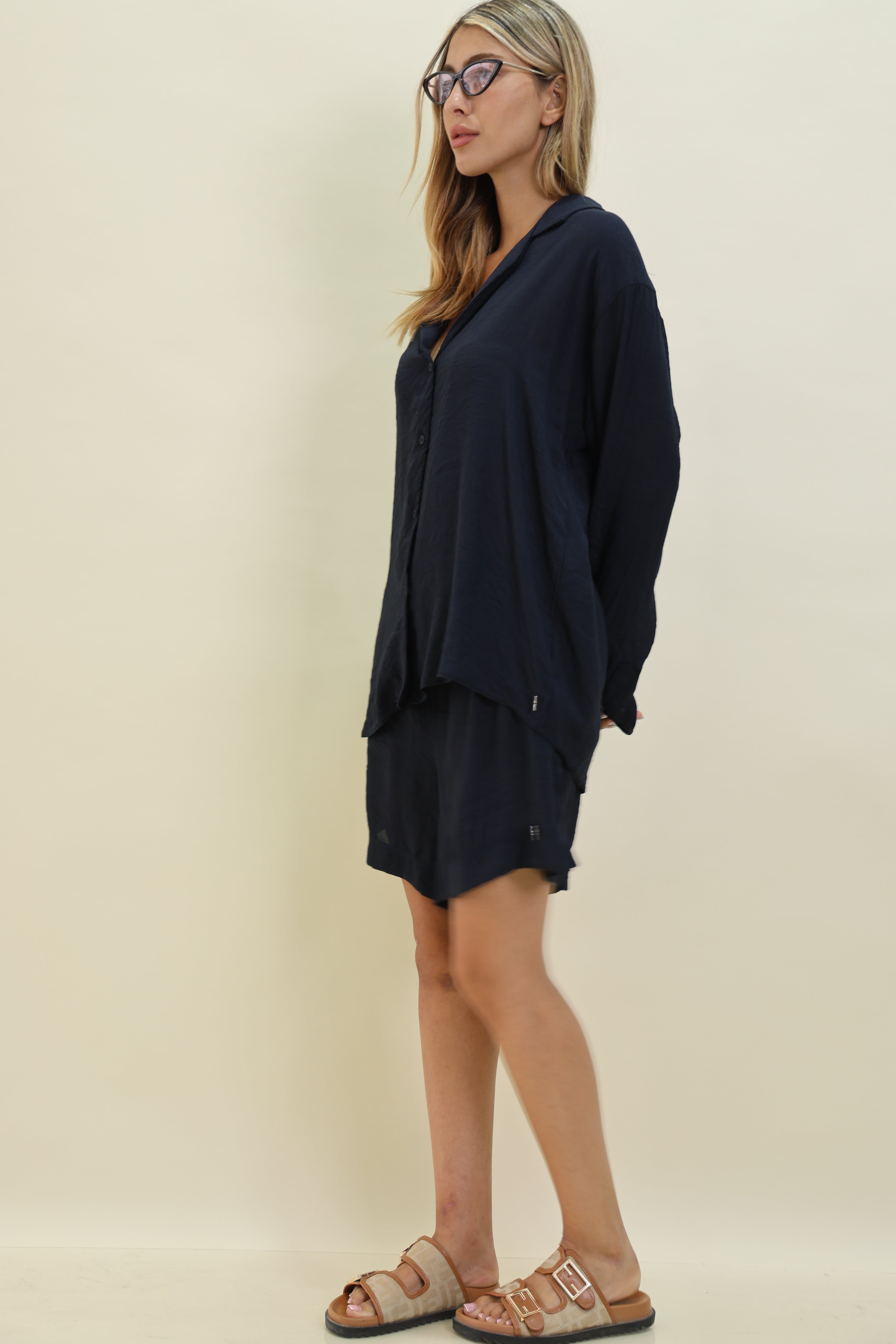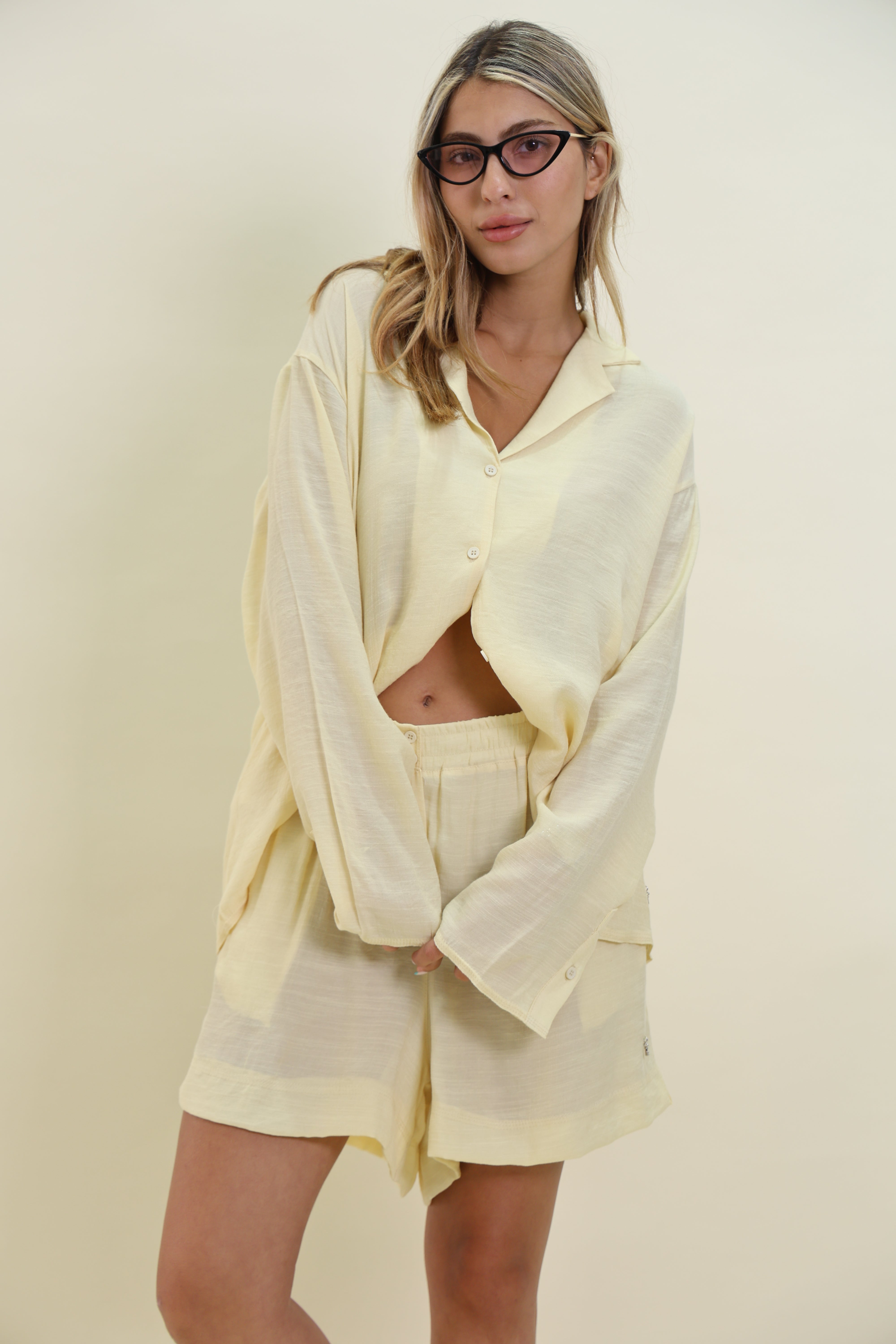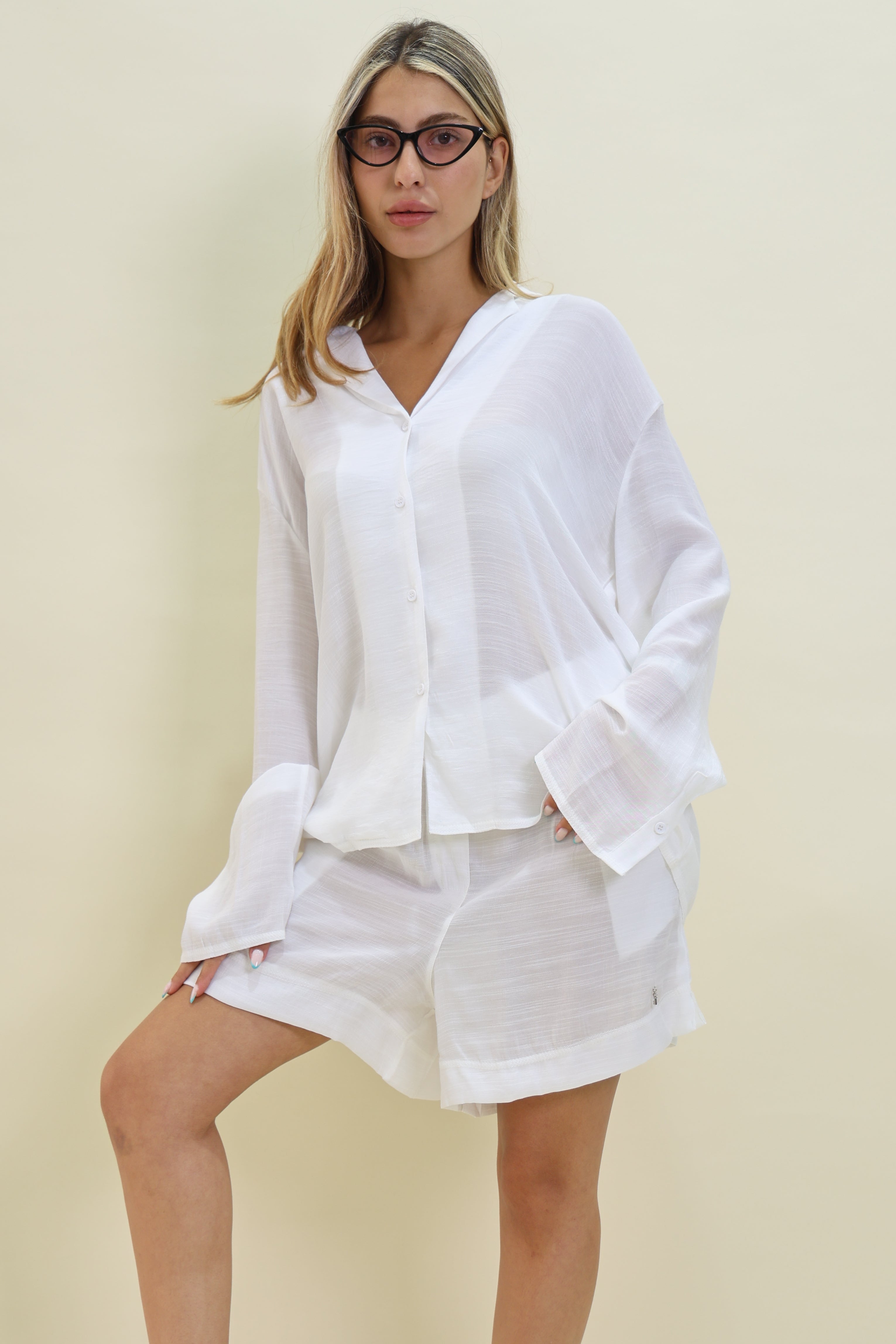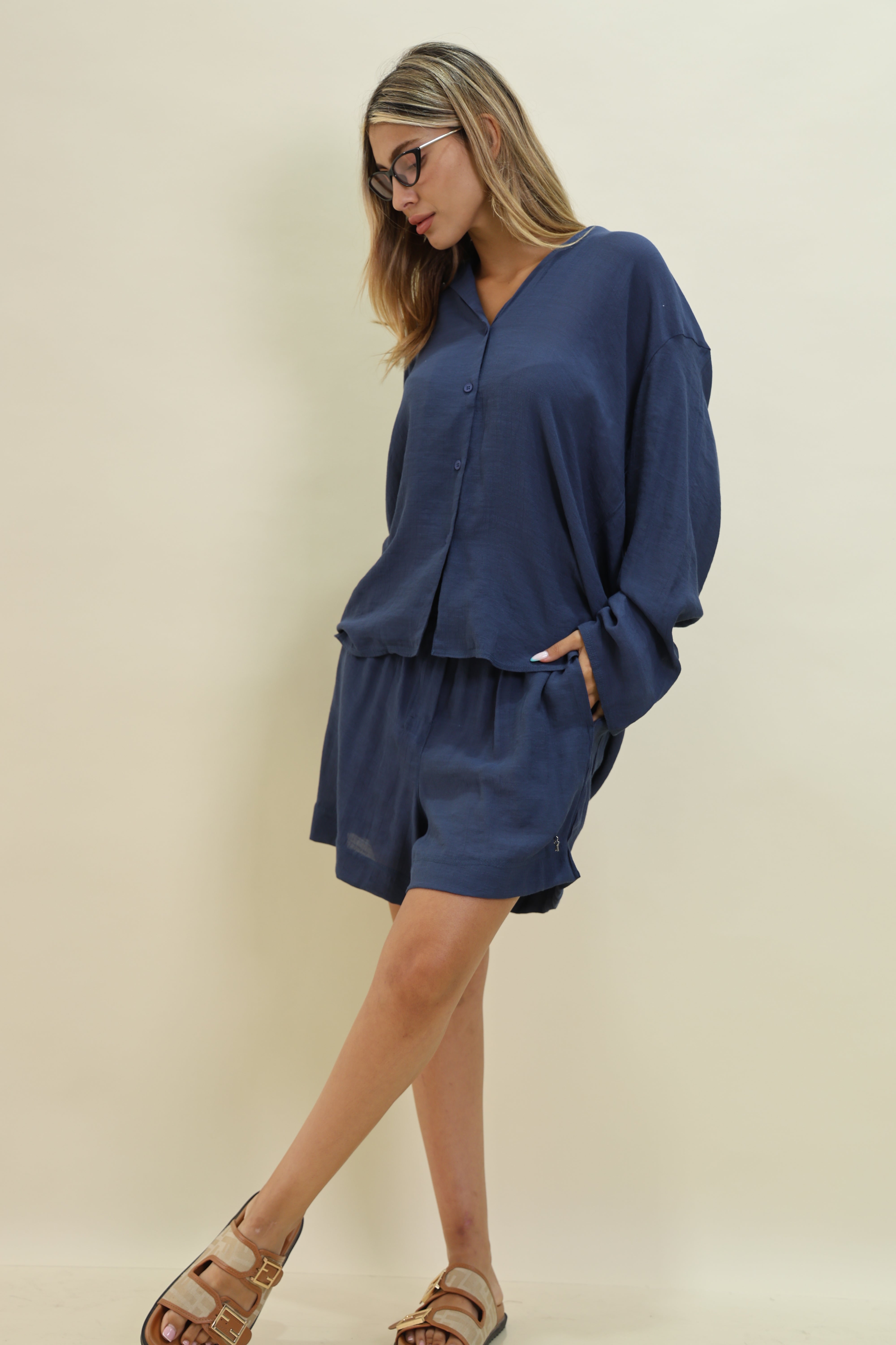 חליפה מכופתרת עם שורט ברדומה פשתן